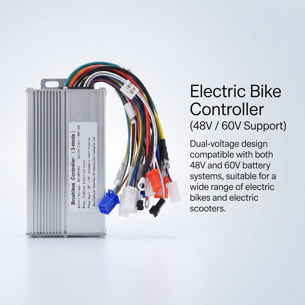 Upgrade and control your electric ride with the NITRONICHE Electric Bike Controller, a high-performance and reliable solution designed for smooth acceleration, efficient power management, and long-lasting performance. This 48V 60V e-bike controller is built to support a wide range of electric bikes and electric scooters, making it ideal for upgrades, replacements, or DIY EV projects. BLDC motor technology